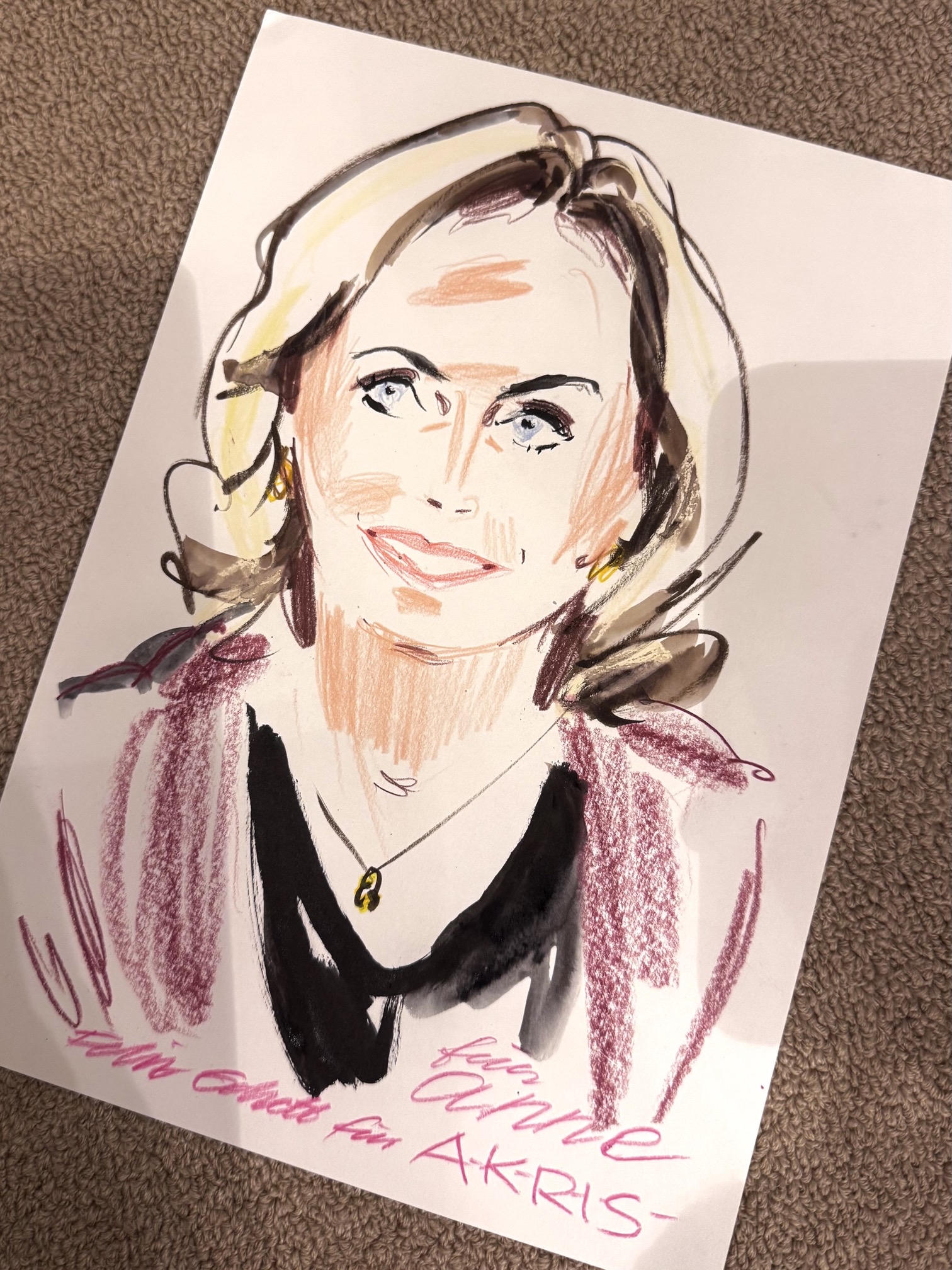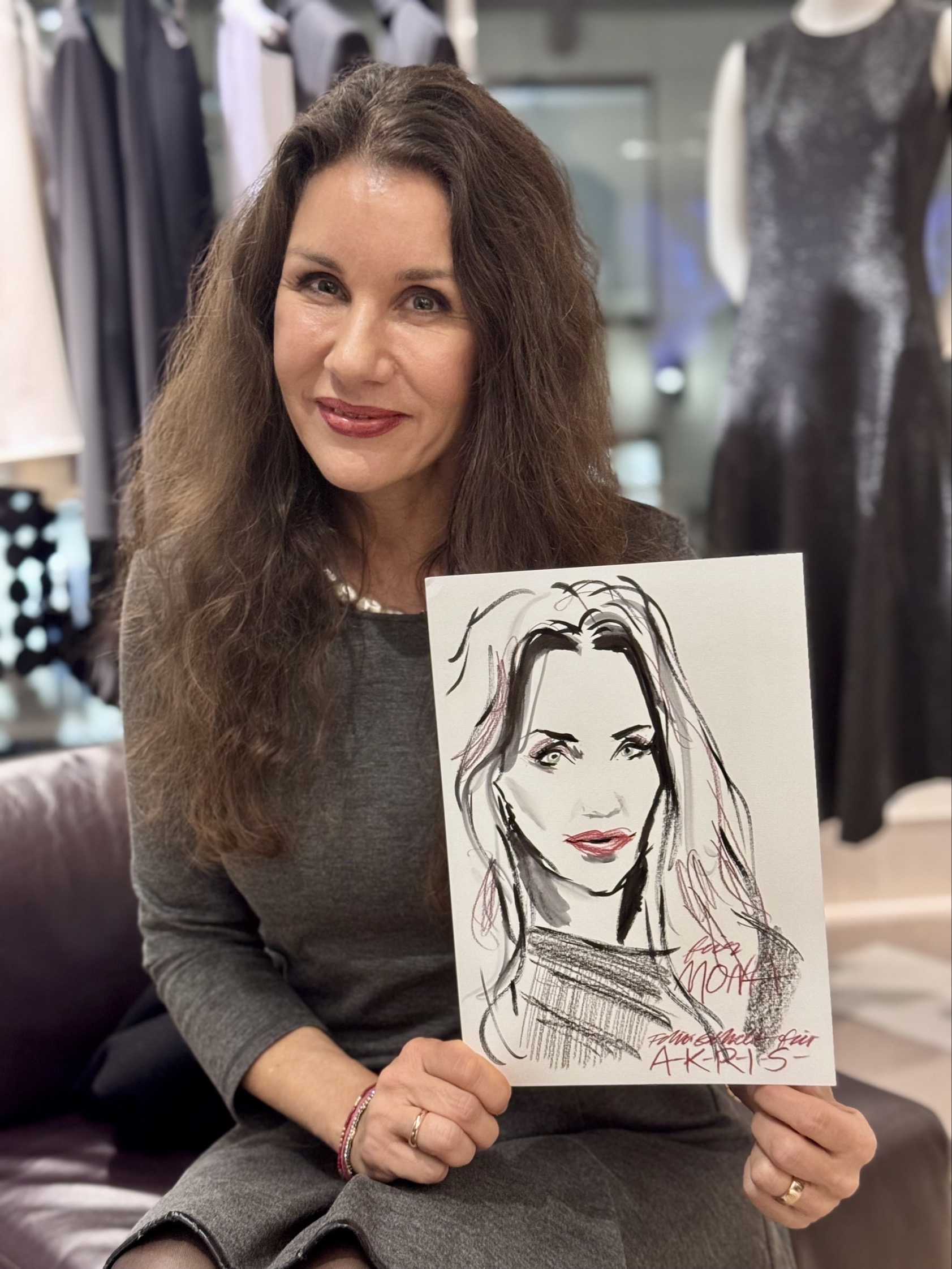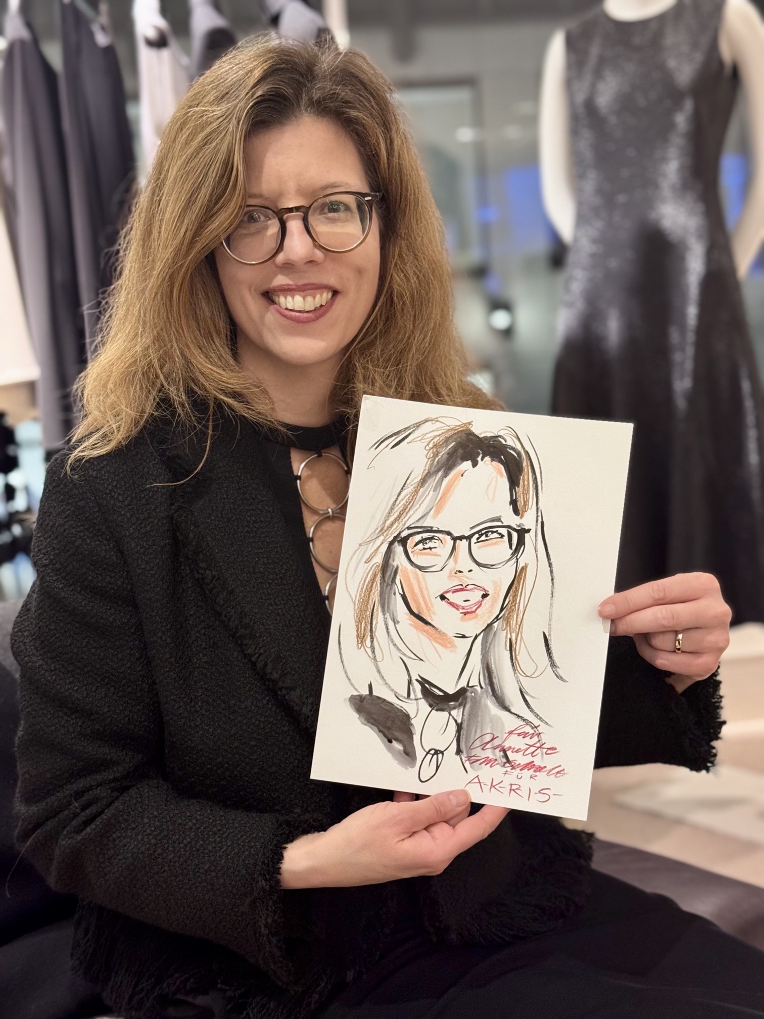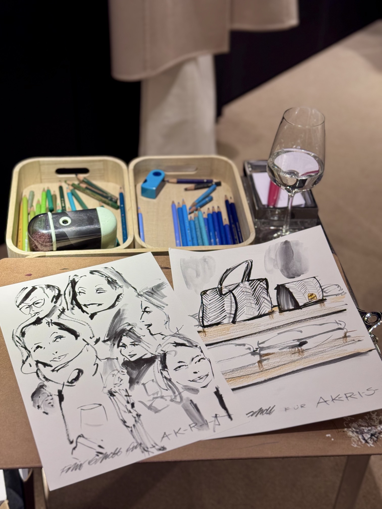 Nach meinen Live-Portraitzeichnungen für Juwelier Mahlberg im Frühsommer war mein Besuch bei AKRIS am Neuen Wall im November bereits mein zweiter Hamburg-Einsatz in diesem Jahr. AKRIS hatte eine kleine, ausgewählte Runde von Kundinnen zu einem besonderen Dinner eingeladen – kreiert von Köchin Cornelia Poletto und ausgerichtet in der Hamburger Boutique.